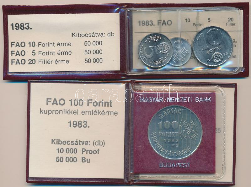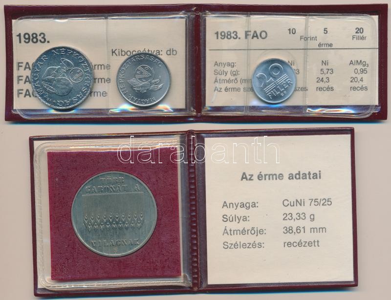 1983. 20f + 5Ft + 10Ft "FAO" eredeti tokban tanúsítvánnyal + 100Ft CuN... https://www.darabanth.com/de/227-Fernauktion/227.0/Numismatik/Ungarische-Munzen~600009/1983-20f-plus-5Ft-plus-10Ft-FAO-eredeti-tokban-tanusitvannyal-plus-100Ft-CuNi-FAO-eredeti-tokban-tanC3~II1010881