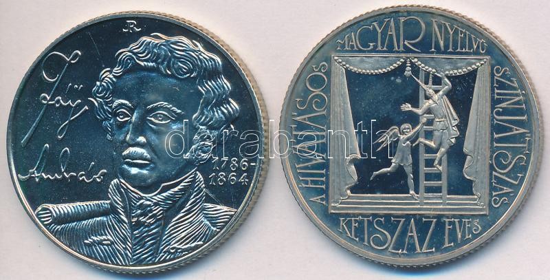 Beschreibung: 1986. 100Ft "Fáy András" + 1990. 100Ft "200 éves a hivatásos magyar nyelvű színjátszás" T:2(PP),BU
