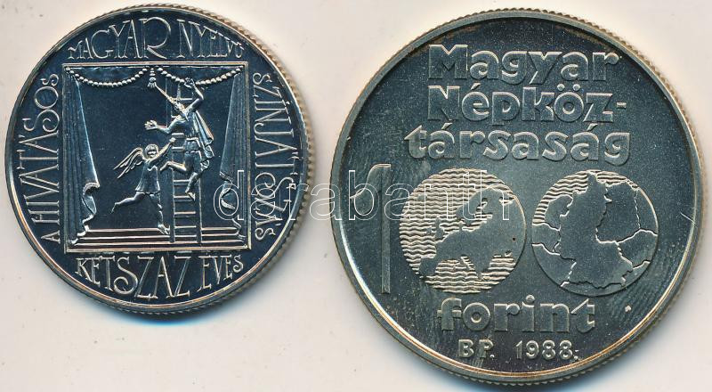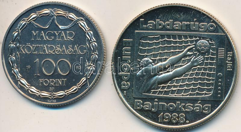 1988. 100Ft "Labdarúgó EB / Kapus" + 1990. 100Ft "200 éves a hivatásos... https://www.darabanth.com/de/227-Fernauktion/227.0/Numismatik/Ungarische-Munzen~600009/1988-100Ft-Labdarugo-EB-Kapus-plus-1990-100Ft-200-eves-a-hivatasos-magyar-nyelvu-szinjats~II1003720