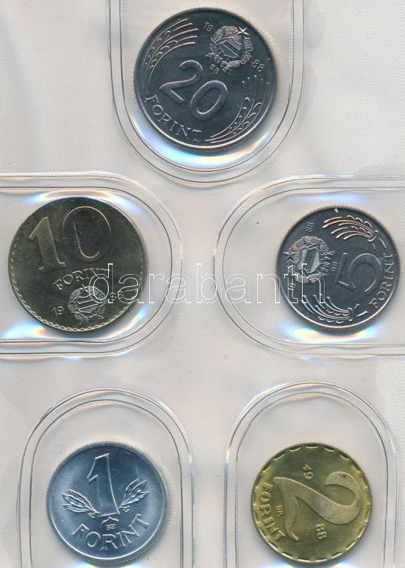 Beschreibung: 1988. 2f-20Ft 10xklf "Magyar Népköztársaság" forgalmi érméi világoskék műbőrtokban T:1
