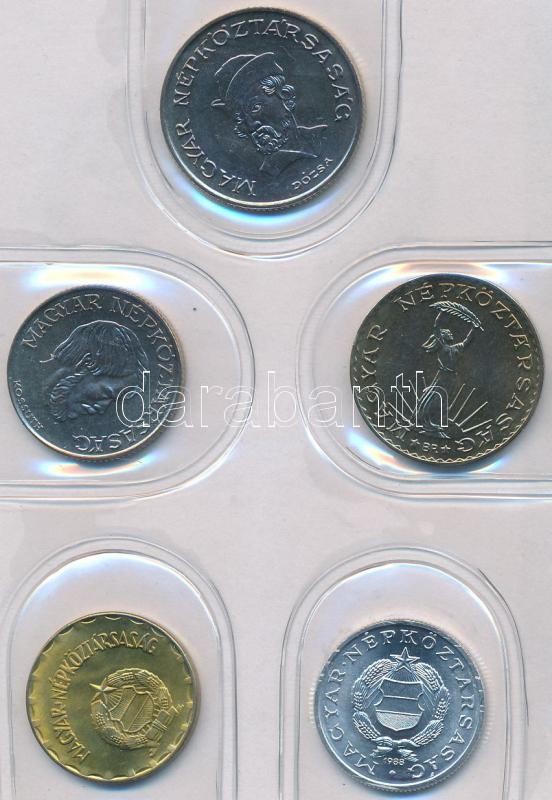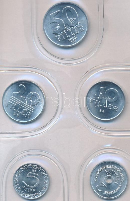 1988. 2f-20Ft 10xklf "Magyar Népköztársaság" forgalmi érméi világoskék... https://www.darabanth.com/de/227-Fernauktion/227.0/Numismatik/Ungarische-Munzen~600009/1988-2f-20Ft-10xklf-Magyar-Nepkoztarsasag-forgalmi-ermei-vilagoskek-mubortokban-T1~II1003690