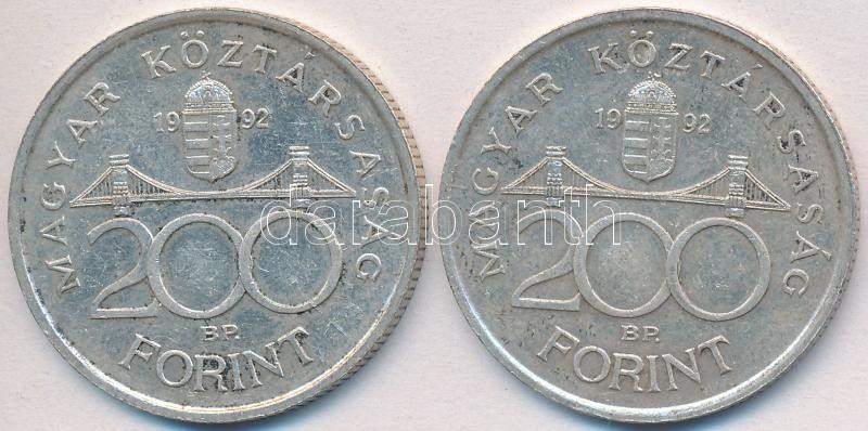1992. 200Ft Ag "MNB" (2x) T:2,2- https://www.darabanth.com/de/227-Fernauktion/227.0/Numismatik/Ungarische-Munzen~600009/1992-200Ft-Ag-MNB-2x-T2-2-~II1007215