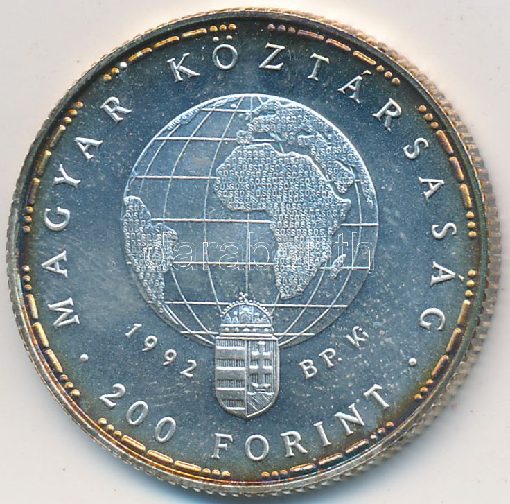 Beschreibung: 1992. 200Ft Ag "Veszélyeztetett állatvilág - gólya" T:BU