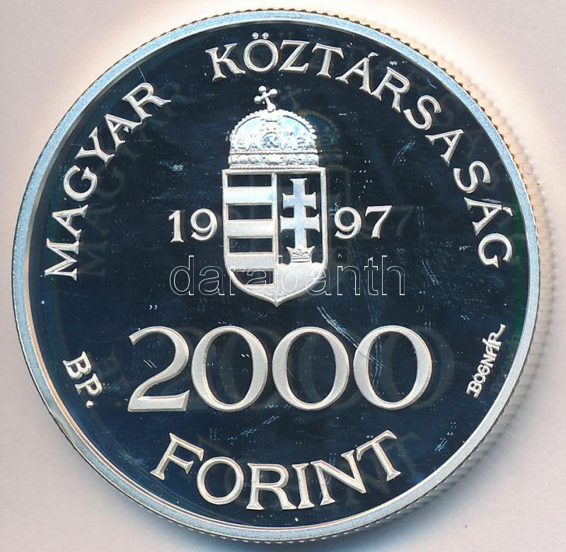 Beschreibung: 1997. 2000Ft Ag "Integráció az EU-ba-EURO I" tanúsítvánnyal T:PP apró felületi karc