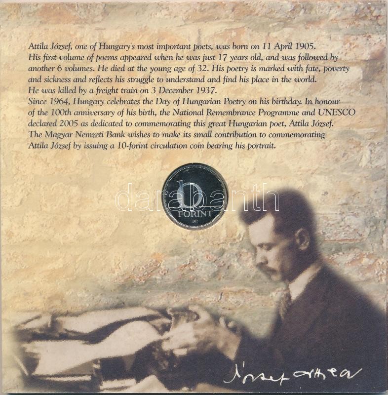 2005. 1Ft-100Ft 7klf db + 10Ft "József Attila" dísztokos szettben T:PP https://www.darabanth.com/de/227-Fernauktion/227.0/Numismatik/Ungarische-Munzen~600009/2005-1Ft-100Ft-7klf-db-plus-10Ft-Jozsef-Attila-disztokos-szettben-TPP~II1012347