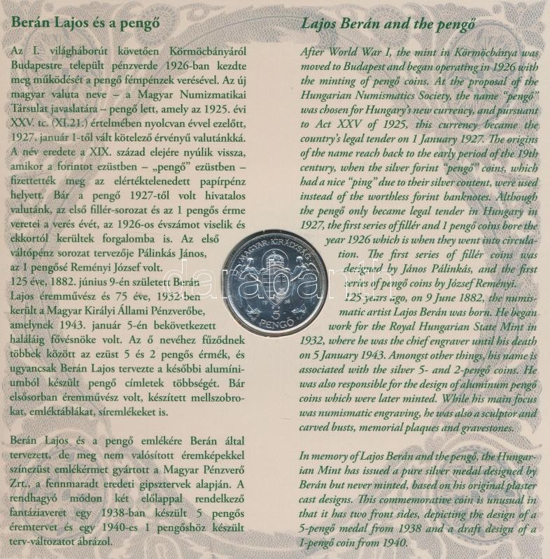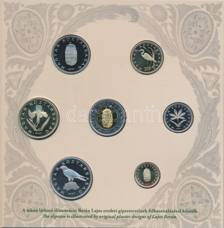 2007. 1Ft-100Ft 8klf db, szettben, benne "Berán Lajos és a pengő" Ag emlékérem (10g/0.999/27mm) T:PP