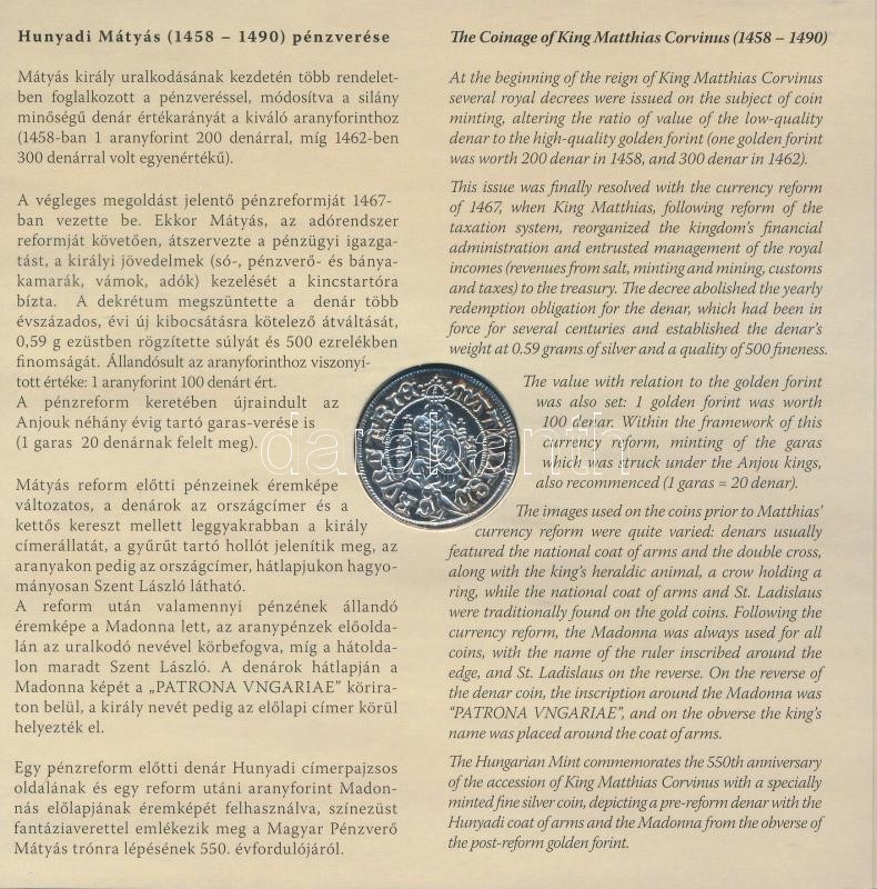 2008. 1Ft-100Ft 7klf db + Mátyás denár Ag fantáziaverete "Reneszánsz emlékév" dísztokos szettben T:PP