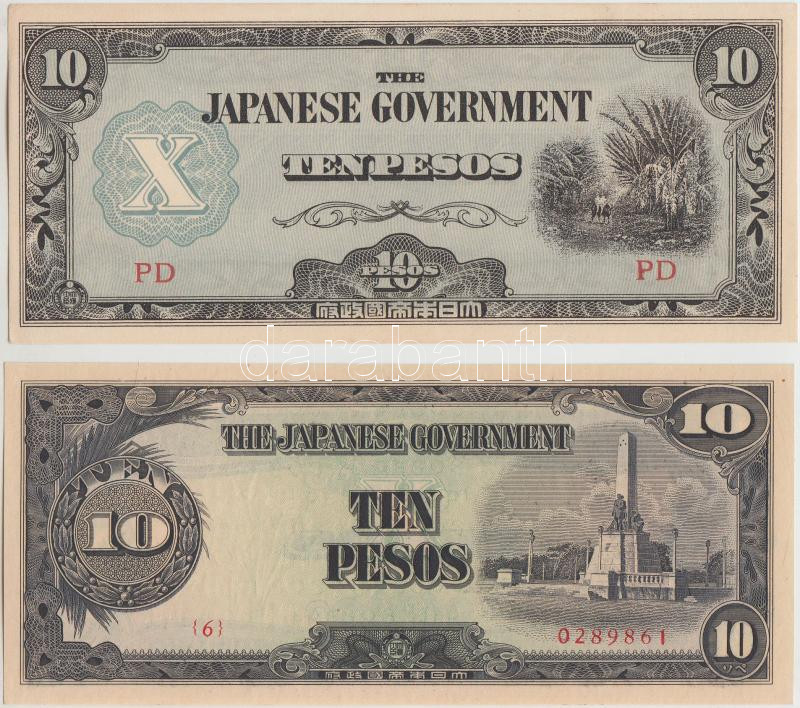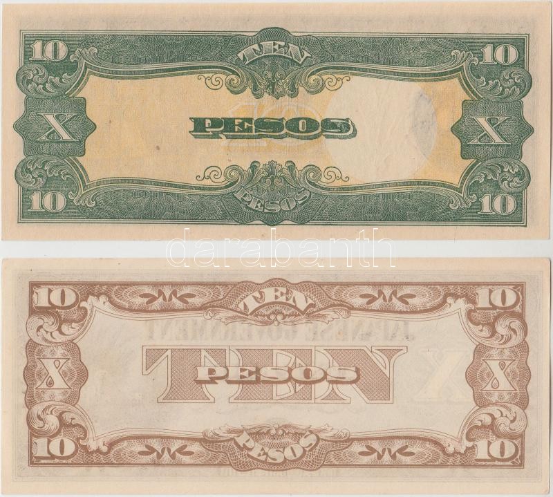 Burma/Japanese occupation 1942. 1/2 Rupee "BD" + Philippines/Japanese occupation 1942-1943. 10 Pesos (2xdiff) C:UNC,AU
