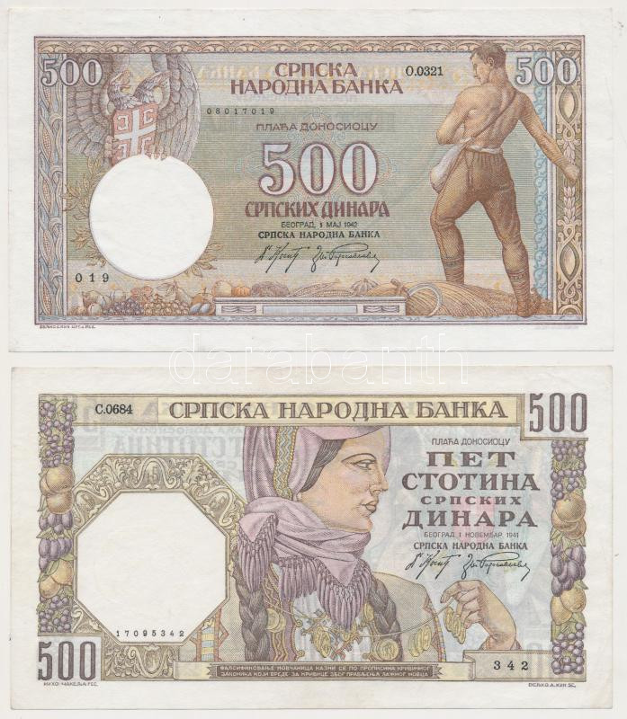 Yogoslavia 1941-1942. ... https://www.darabanth.com/de/227-Fernauktion/227.0/Numismatik/Weltweit-Banknoten~600012/Jugoszlavia-1941-1942-500D-2x-TI-hajtatlan-3Cbr3EYogoslavia-1941-1942-500-Dinara-2x-CAU-unf~II1005212