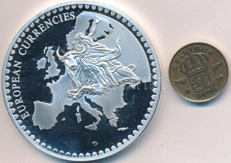 Belgium ND "European Currencies" silver plated medallion with 1959. 50 Cents coin (52,52G/51mm) C:PP fingerprint