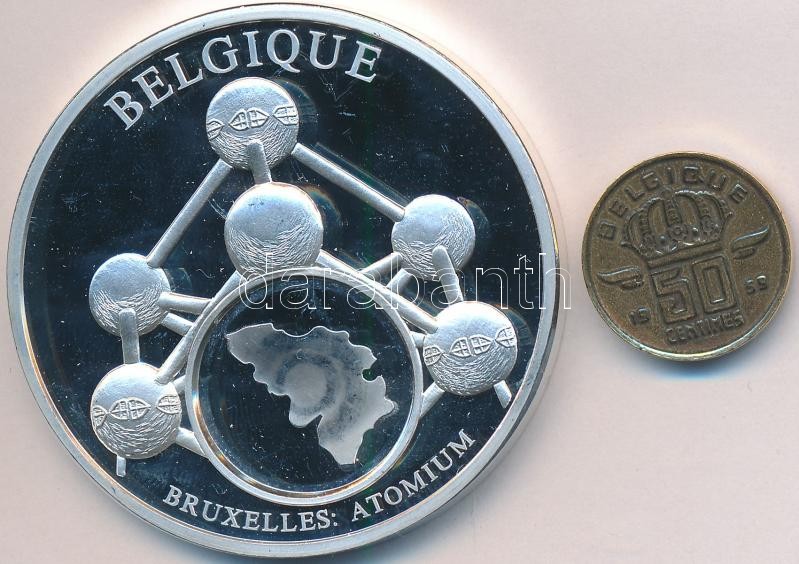 Belgium DN "Európai valuták" ezüstözött emlékérem, 1959. 50c érmével (52,52g/51mm) T:PP ujjlenyomat