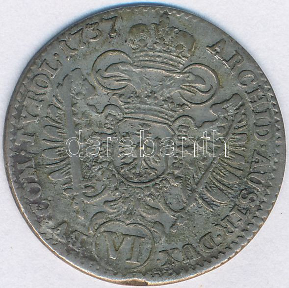 Austria 1737. 6 Kreuzer Ag ... https://www.darabanth.com/de/227-Fernauktion/227.0/Numismatik/Weltweit-Munzen~600013/Ausztria-1737-6Kr-Ag-III-Karoly-T2-3-3Cbr3EAustria-1737-6-Kreuzer-Ag-Charles-VI-CVF-F~II1012137