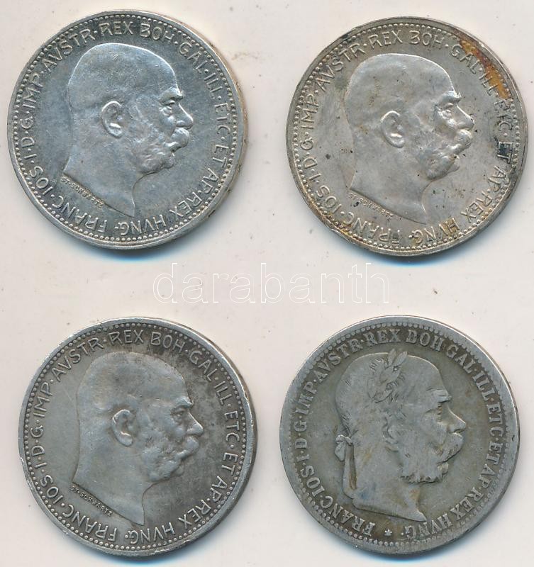 Beschreibung: Ausztria 1894-1915. 1K Ag "Ferenc József" (4xklf évszám) T:2,2-,3