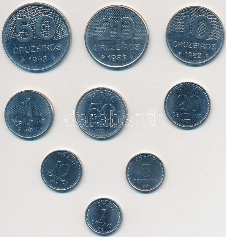 Brazil 1980-1986. 1 Centavo - 50 Cruzeiros (9xdiff) C:XF,VF