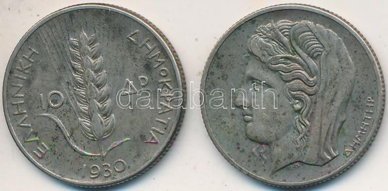 Greece 1930. 10 Drachmai Ag (2x) ... https://www.darabanth.com/de/227-Fernauktion/227.0/Numismatik/Weltweit-Munzen~600013/Gorogorszag-1930-10D-Ag-2x-T2-2--3Cbr3EGreece-1930-10-Drachmai-Ag-2x-CXF-VF~II1004385