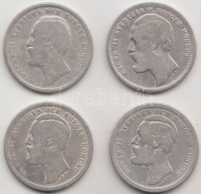 Beschreibung: Svédország 1875-1897. 1Kr Ag "II. Oszkár" (4xklf) T:3