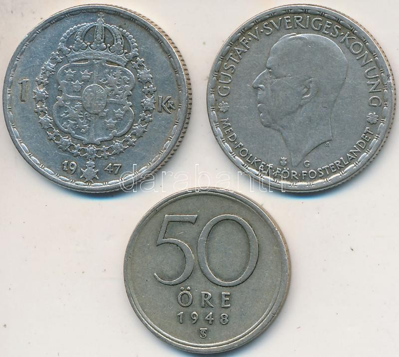 Sweden 1... https://www.darabanth.com/de/227-Fernauktion/227.0/Numismatik/Weltweit-Munzen~600013/Svedorszag-1943-1947-1Kr-Ag-V-Gusztav-plus-1948-50o-Ag-T2--3Cbr3ESweden-1943-1947-1-Krona-Ag-~II1004432