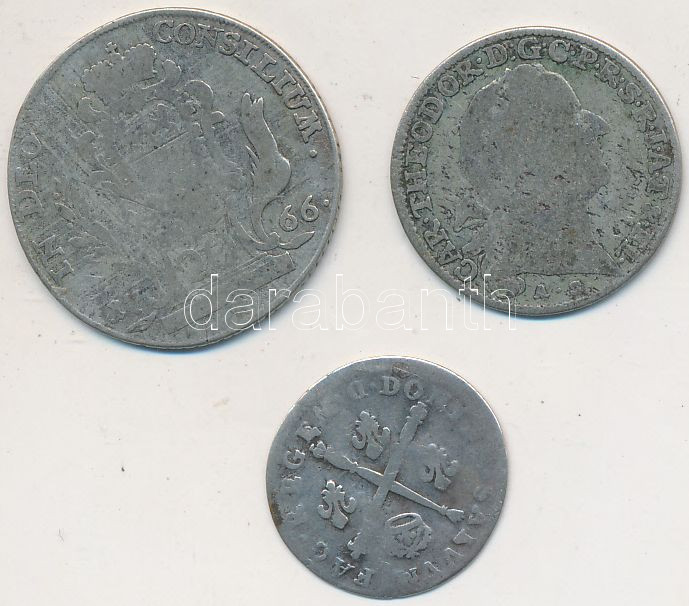 Vegyes: Franciaország 17??. 5S Ag "XIV. Lajos" (1,45g) + Német Államok/Bajorország 1766A 20kr Ag "III. Miksa" (6,22g) + Pfalz-Sulzbach 1769AS 10kr Ag "Karl Theodor" (3,61g) T:3,3-