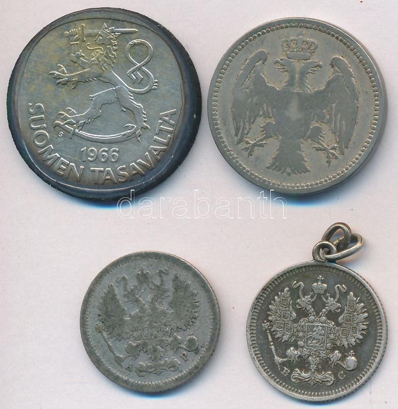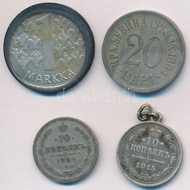Vegyes: Szerbia 1884H 20p Cu-Ni + Oroszország 1904. 10k Ag + 1915. 10k Ag füllel + Finnország 1966S 1M Ag T:2,2-,3