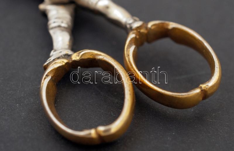 Antik figurális kis olló, régi tokban, aranyozott végekkel, h:9 cm https://www.darabanth.com/de/228-Fernauktion/228.0/Andere-Sammelgebiete/Antik~14/Antik-figuralis-kis-ollo-regi-tokban-aranyozott-vegekkel-h9-cm~II1012994