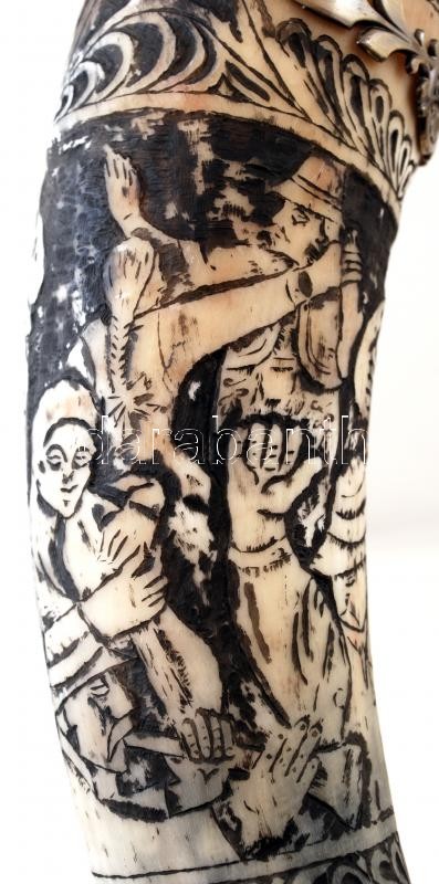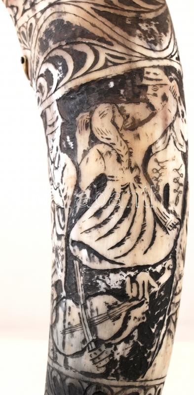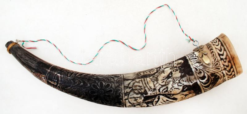 Gazdagon faragott szaru kürt, karcolás nyomokkal, réz rátétekkel, h:50... https://www.darabanth.com/de/228-Fernauktion/228.0/Andere-Sammelgebiete/Antik~14/Gazdagon-faragott-szaru-kurt-karcolas-nyomokkal-rez-ratetekkel-h50-cm~II1018736