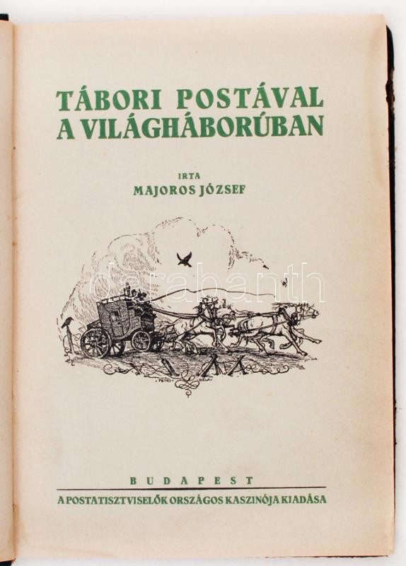 Majoros József: Tábori postával a világháborúban. Bp., 1937, Postatisztviselők Országos Kaszinója. A szerző által névre szólóan dedikálva. Kopott, kicsit sérült vászonkötésben, egyébként jó állapotban.