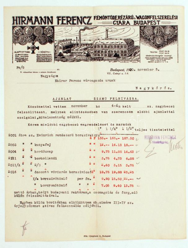 Beschreibung: 1922 Bp. VI. Andrássy út 46., Hammel Tivadar kályhaboltjának díszes fejléces számlája 1 és 2K forgalmi adóbélyeggel