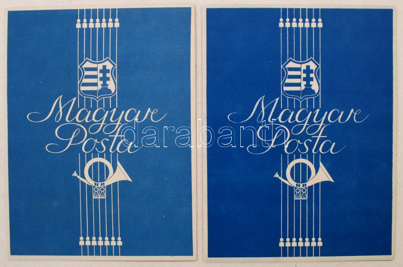 Beschreibung: 1947 A Magyar Posta 2 db dísztávirata, belsejében színes illusztrációval