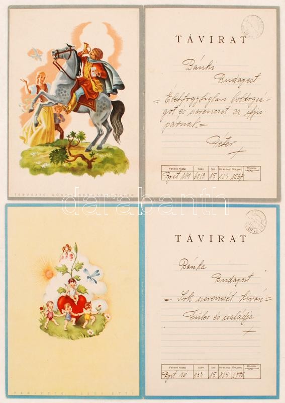 1947 A Magyar Posta 2 db dísztávirata, belsejében színes illusztrációv... https://www.darabanth.com/de/228-Fernauktion/228.0/Andere-Sammelgebiete/Dokument~35/1947-A-Magyar-Posta-2-db-disztavirata-belsejeben-szines-illusztracioval~II1016261