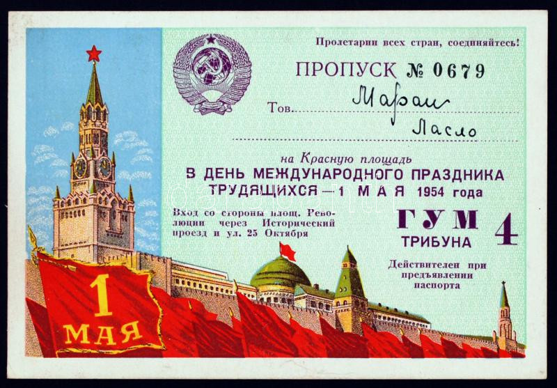 1954 Russian ticket https://www.darabanth.com/de/228-Fernauktion/228.0/Andere-Sammelgebiete/Dokument~35/1954-Szovjet-tribun-jegy--3Cbr3E1954-Russian-ticket~II1017511