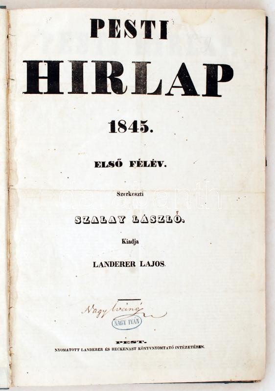 1845 A Pesti hírlap I. félévi évfolyamának számai bekötve. Korabeli ka... https://www.darabanth.com/de/228-Fernauktion/228.0/Andere-Sammelgebiete/Drucksachen~5/1845-A-Pesti-hirlap-I-felevi-evfolyamanak-szamai-bekotve-Korabeli-kartonkotesben-szep-C3~II1016448