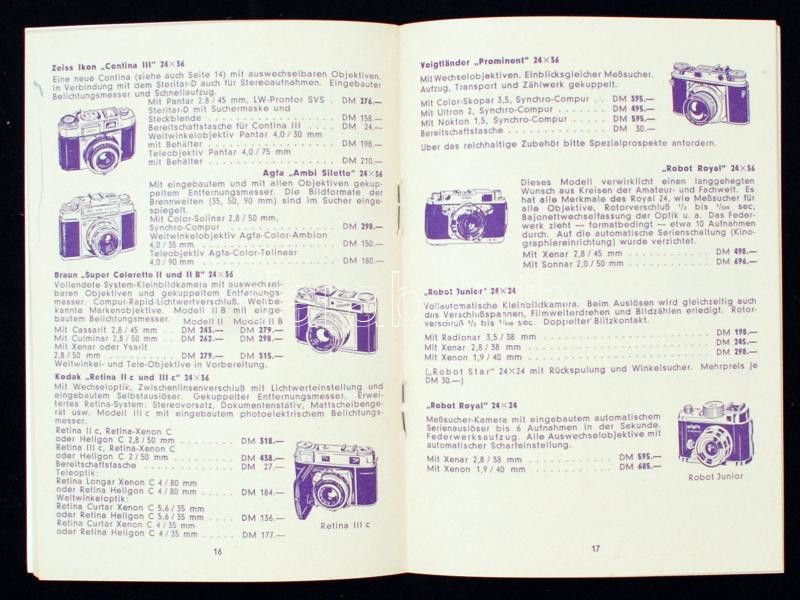 Beschreibung: 1930-1956 HAFA (Hatschek és Farkas) és Photo Dobos fényképészeti árjegyzékei, egyik ábrákkal, fotókkal illusztrált