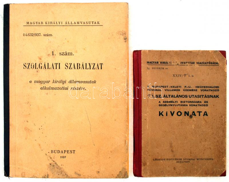 cca 1937 Bp., Magyar Királyi Államvasutak Igazgatósága által kiadott a Budapest-Keleti és Hegyeshalom fővonal villamos üzemére vonatkozó általános utasítások és szolgálati szabályzat
