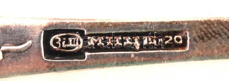Beschreibung: 6 db indamintával díszített ezüstözött kanál, jelzett, dobozban, h: 14 cm