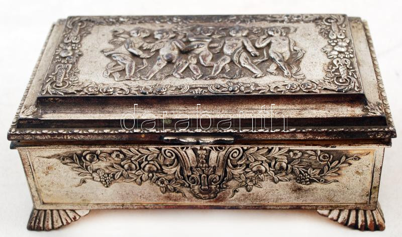 Beschreibung: Antik japán fém doboz puttókkal, európai exportra készült, 150x85x660mm / Antique Japanese metal box with cherubs, Made for European Exports