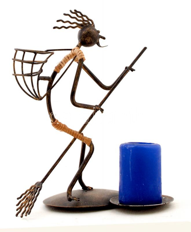 Beschreibung: Boszorkányt mintázó drót gyertyatartó gyertyával