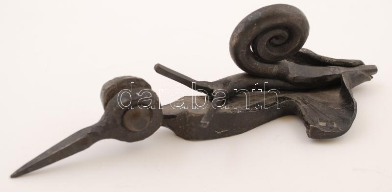 Beschreibung: Iparművész csiga, jelzett, kovácsolt vas, h:15,5 cm