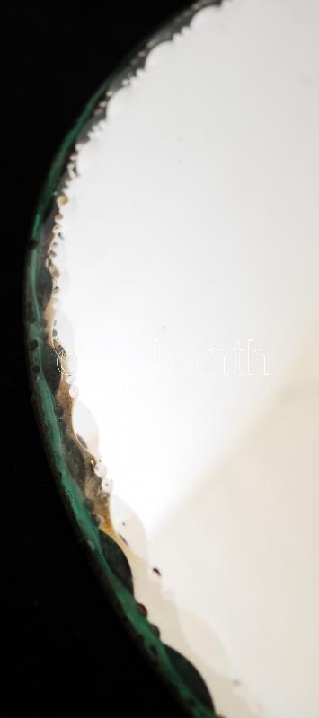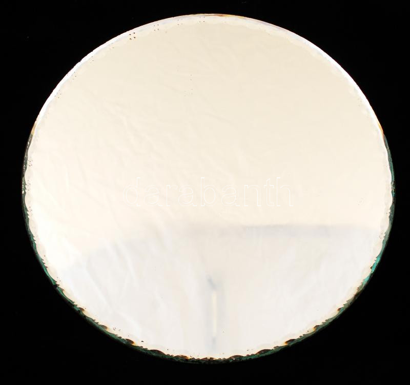 Beschreibung: Kerek tükör, hátulján filc borítással, a szélén kisebb csorbákkal, d: 29,5 cm
