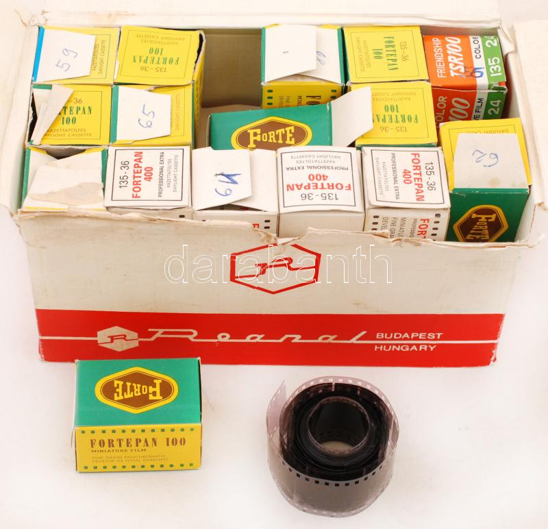 cca 1988 Főtaxis események, karambolok, gépkocsi sérülések és egyéb vállalati események negatívgyűjteménye, 34 kisfilmes dobozban ezernél több felvétel, a negatívok mérete 24x36 és 24x24 mm, többnyire tekercsben, némelyikhez adatok is