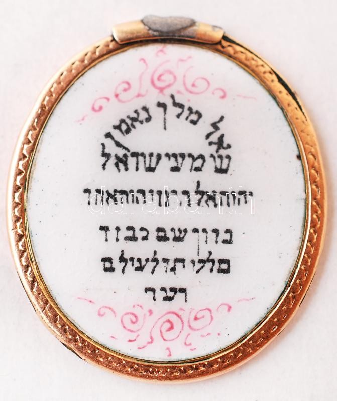 Beschreibung: Arany (Au) 18 K keretű judaika témájú porcelán medál, br: 3,9 g