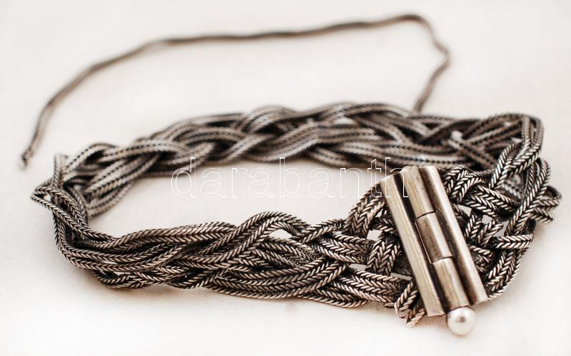 Ezüst (Ag.) fonott karkötő, jelzett, kis sérüléssel, h: 20,5 cm, nettó... https://www.darabanth.com/de/228-Fernauktion/228.0/Andere-Sammelgebiete/Juwelen~30/Ezust-Ag-fonott-karkoto-jelzett-kis-serulessel-h-20-5-cm-netto-30-g~II1018360
