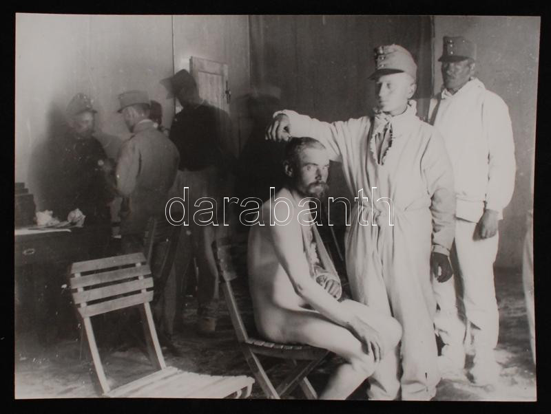 Beschreibung: cca 1918 Katonai kórházban pucér katona ellátása, korabeli üveglemez negatívról készült későbbi nagyítás, 18x24 cm