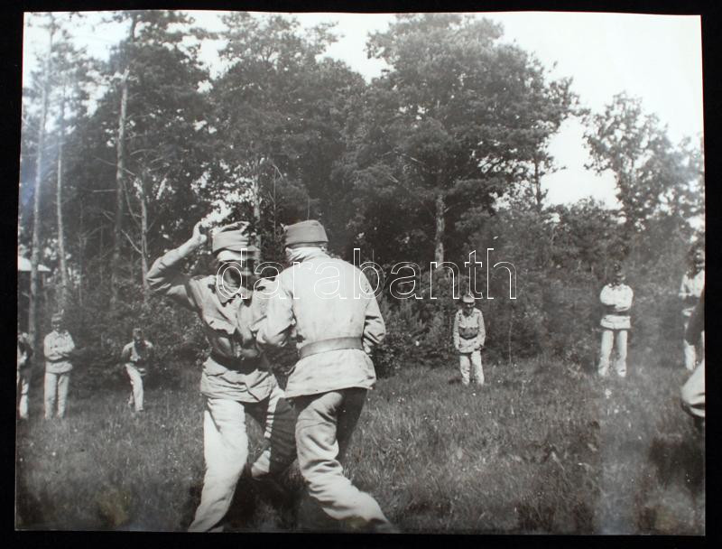Beschreibung: cca 1925 Sajátos katonai kiképzés: kézi tusa teljes sötétségben, korabeli üveglemez negatívról készült későbbi nagyítás, 18x24 cm