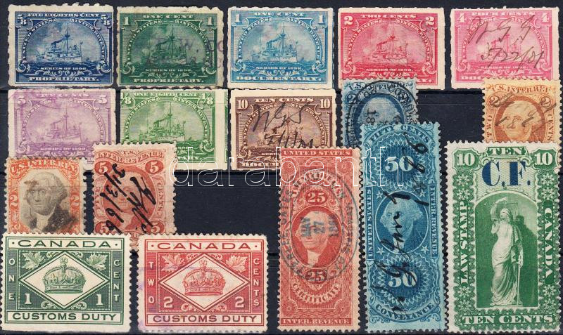 17 db USA ill. Kanada okmánybélyeg https://www.darabanth.com/de/228-Fernauktion/228.0/Andere-Sammelgebiete/Stempelmarken~34/17-db-USA-ill-Kanada-okmanybelyeg~II1017855