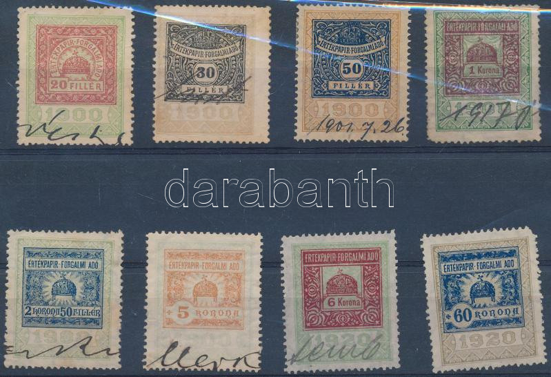 Beschreibung: 1900-1920 8 klf értékpapír forgalmi adó bélyeg