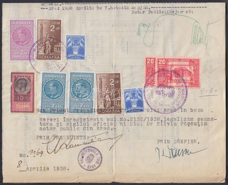 Beschreibung: 2 db 20 Aranyfillér konzuli illetékbélyeg okiraton