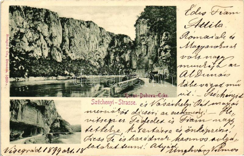 1899 Dubova, Kazán szoros, Széchenyi út és emléktábla / gorge, road https://www.darabanth.com/de/228-Fernauktion/228.0/Ansichtskarten/Siebenburgen~200006/1899-Dubova-Kazan-szoros-Szechenyi-ut-es-emlektabla-gorge-road~II1017289
