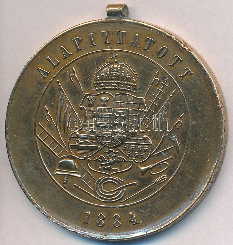 1904-. "A Magyar Országos Tűzoltó Szövetség V éves Szolgálati Érme" aranyozott Br kitüntetés szalag nélkül T:2,2- ph.