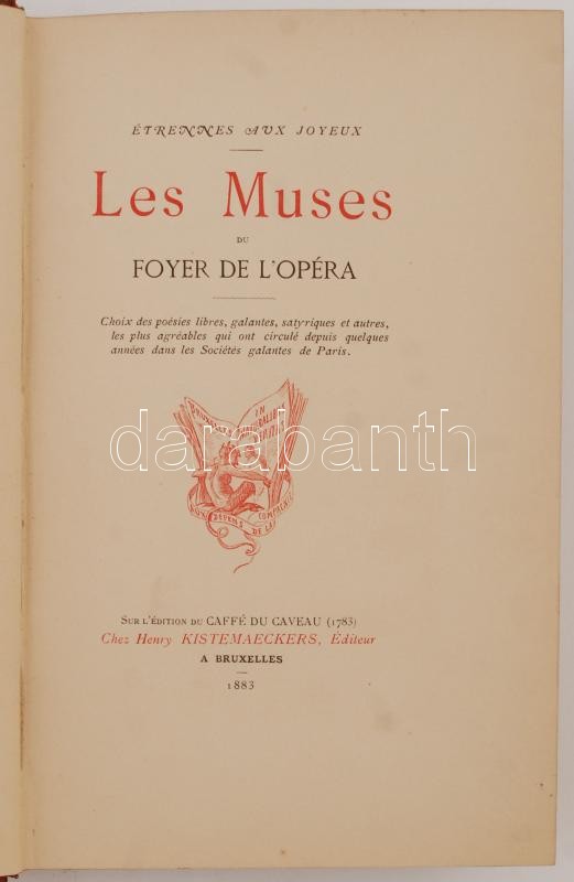 Beschreibung: Étrennes aux Joyeux. Les Muses du Foyer de L'Opera. Sur L'Édition du Caffé du Caveu(1783), Chez Henry Kistemaeckers, Éditeur a Bruxelles, 1883. Kiadói bordázott gerincű félbőr kötés, festett lapszélek, kissé kopottas állapotban / Half leather bindig, with small faults