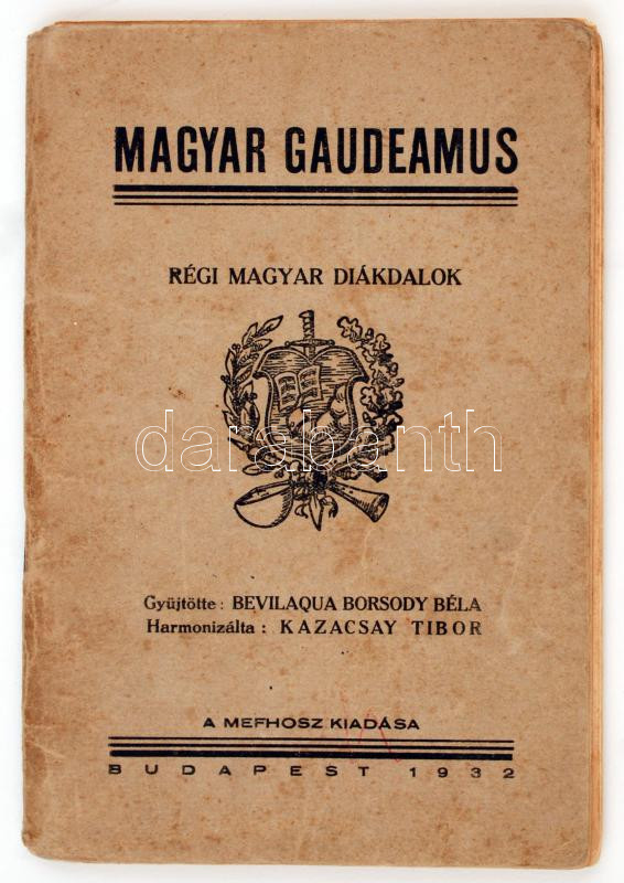 Magyar Gaudeamus. Régi magyar diákdalok. Bp., Magyar Egyetemi és Főiskolai Hallgatok Országos Szövetsége. Kiadói papírkötés, lapok kijárnak, kissé kopottas állapotban.